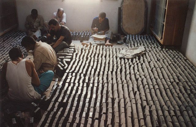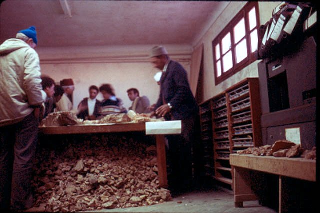 - In the basement of the mining office in Mibladen licensed Moroccan mineral dealers bid on different lots of minerals. For this shot Leven put his camera on a bench and set the timer; many people here do not want to be photographed.