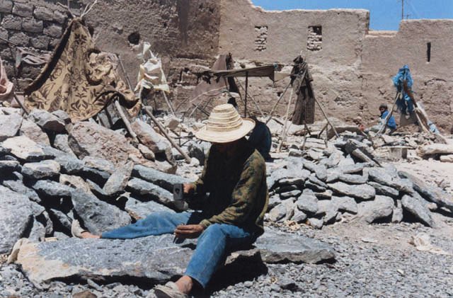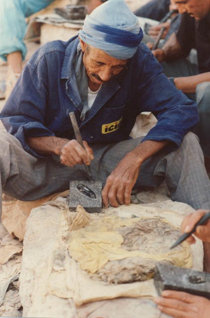 For many years this was the way fossils were prepped in Morocco. Using the simplest of tools