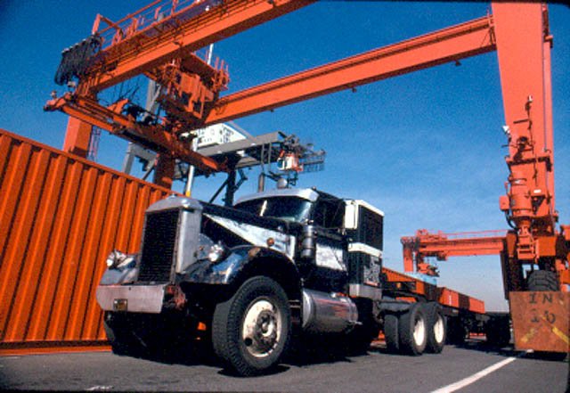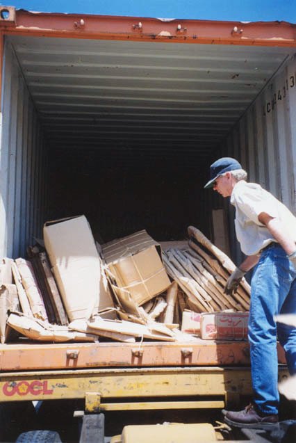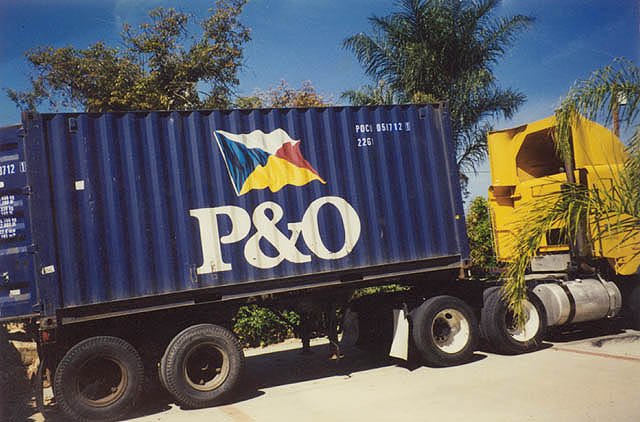 After trans-shipment through a European port, the container usually arrives in Los Angeles