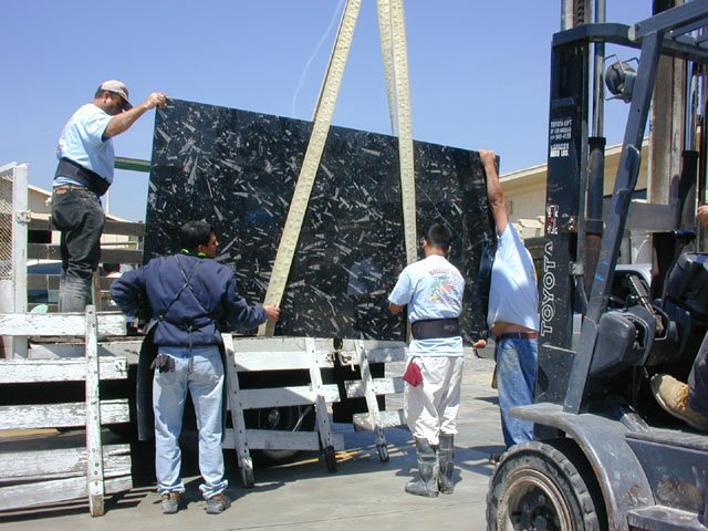 - Leven is choosing slabs that will be cut into tabletops of various shapes and sizes.