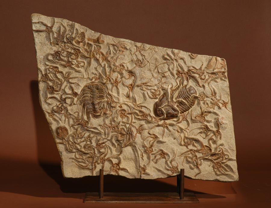 Ophiuroidae with 2 Trilobites Asafus and Selenopeltis and Crinoid Ordovician